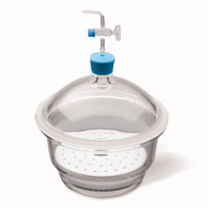 W dostawie: kurek szklany eksykatora, plastikowa zakrętka z otworem (9 mm) i odpowiednia perforowana płytka z porcelany.
