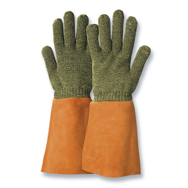 Kombinacja ta umożliwia przeprowadzanie prac w wysokich temperaturach aż do 250°C i dodatkowo chroni przedramię. Długość 380-400 mm.